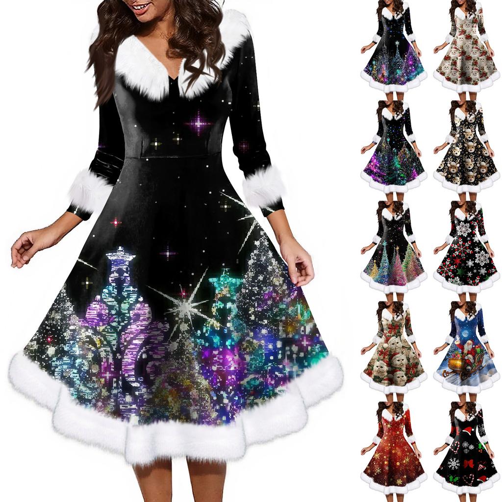 Женское модное повседневное платье с v-образным вырезом и рождественским принтом для вечеринки с длинными рукавами — купить товар онлайн с бесплатной доставкой по всему миру!