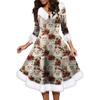 Женское модное повседневное платье с v-образным вырезом и рождественским принтом для вечеринки с длинными рукавами