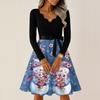 Женское повседневное модное платье с V-образным вырезом и длинными рукавами в стиле ретро с рождественским принтом — купить товар онлайн с бесплатной доставкой по всему миру!