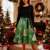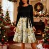 Женское модное повседневное платье приталенного кроя с круглым вырезом, рождественским принтом и длинными рукавами