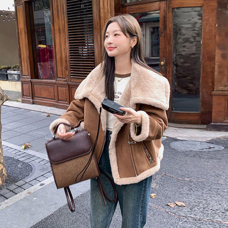 Новая имитация шерсти короткая шуба зимняя утолщенная маленькая локомотивная куртка из искусственного меха женская