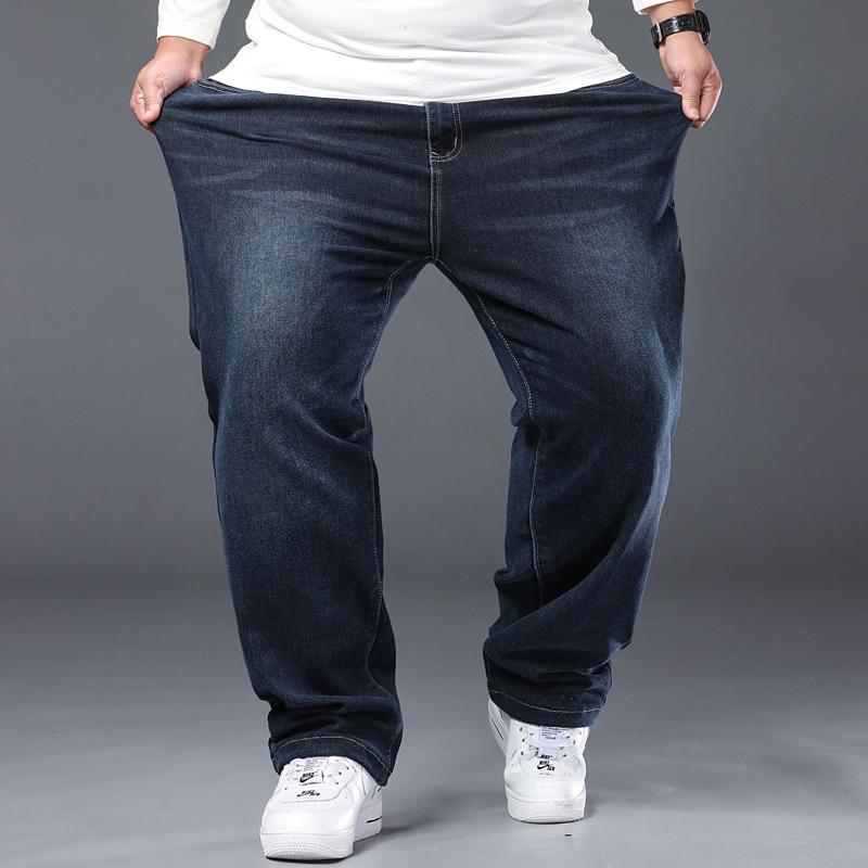 Новинка Мужские джинсы больших размеров Брюки С высокой посадкой Для среднего возраста Папин стиль Свободный крой Большие размеры Прямые Эластичные Деловые брюки