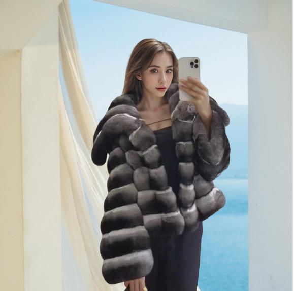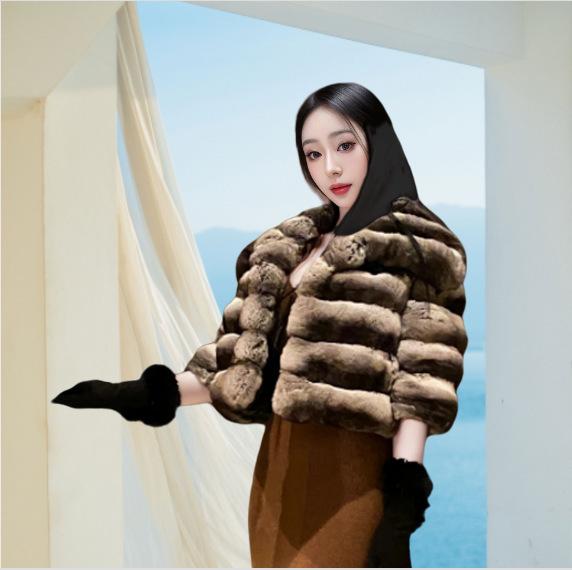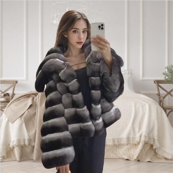 Зимнее новое пальто из искусственного меха, имитация меха кролика рекс, воротник из шиншиллы, короткое женское утолщенное пальто