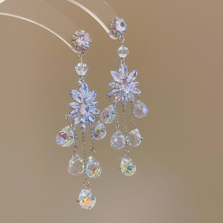 Серьги-пусеты с геометрической бахромой из жемчуга 'Серебряная игла' Французский дизайн Высококлассные серьги Легкая роскошь Те же серьги, что и в Xiaohongshu