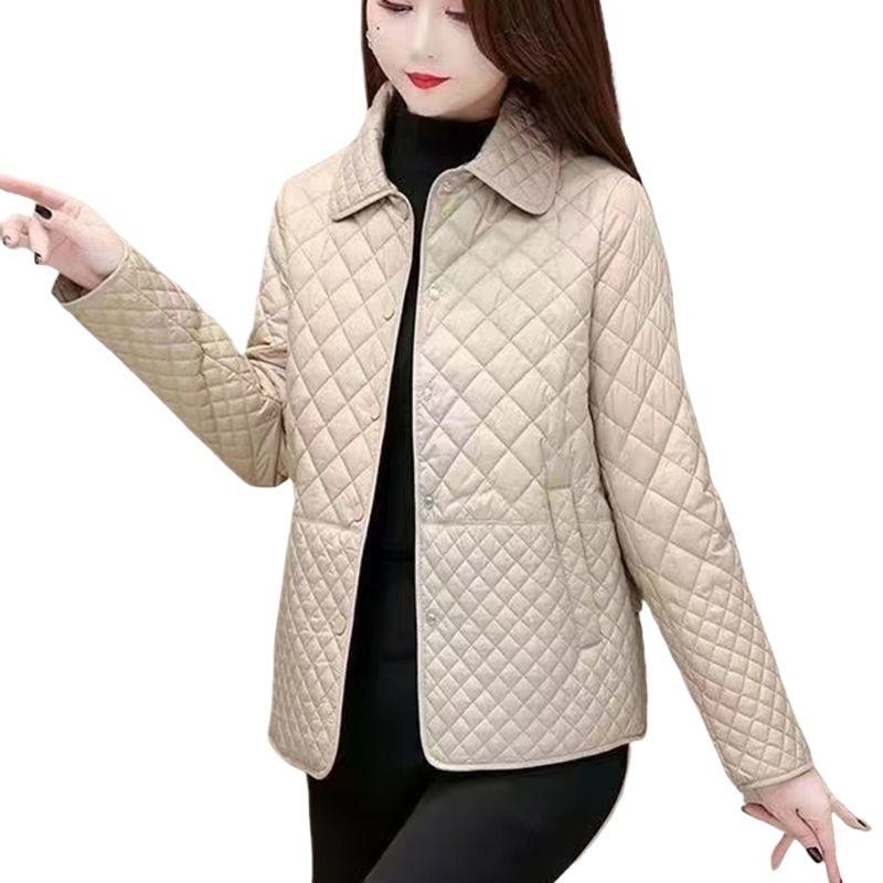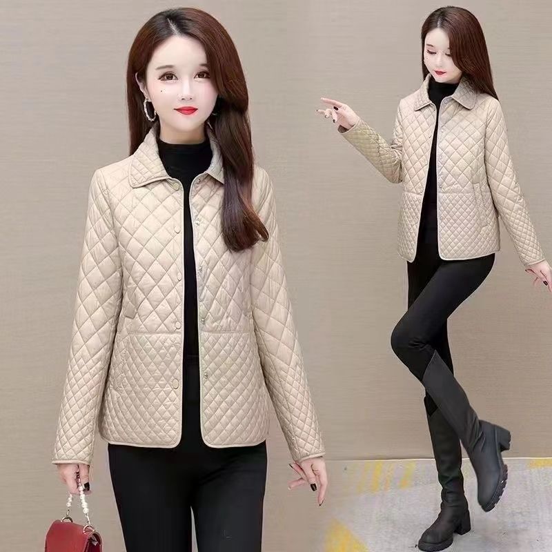 Небольшая ромбовидная сетчатая утепленная хлопковая одежда для женщин, зимняя, новая, большого размера, тонкая и с тонкими лацканами, тонкая хлопковая одежда для женщин