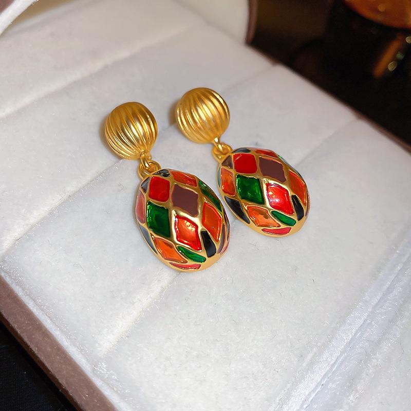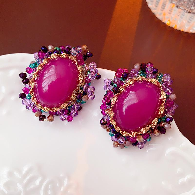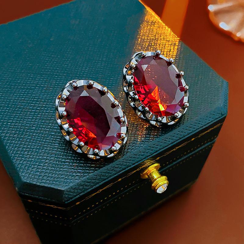 Винтажные серьги-пусеты с овальными кристаллами 'Серебряная игла': Легкая роскошь и высокая мода
