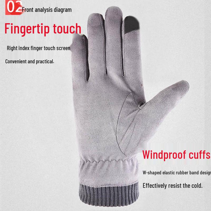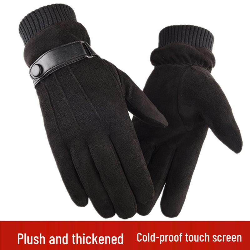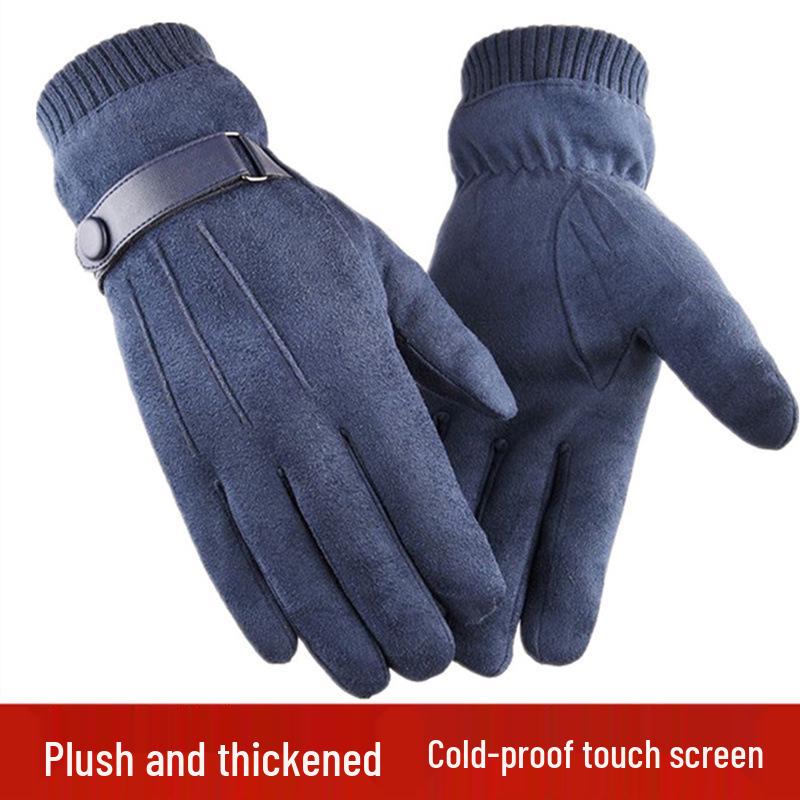 Мужские зимние замшевые перчатки: Теплые, на флисовой подкладке, ветрозащитные, совместимые с сенсорным экраном для вождения и езды на велосипеде