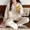 Многослойный комплект стеганой пижамы из хлопка с длинным рукавом для женщин - Повседневный кардиган для дома на осень/зиму