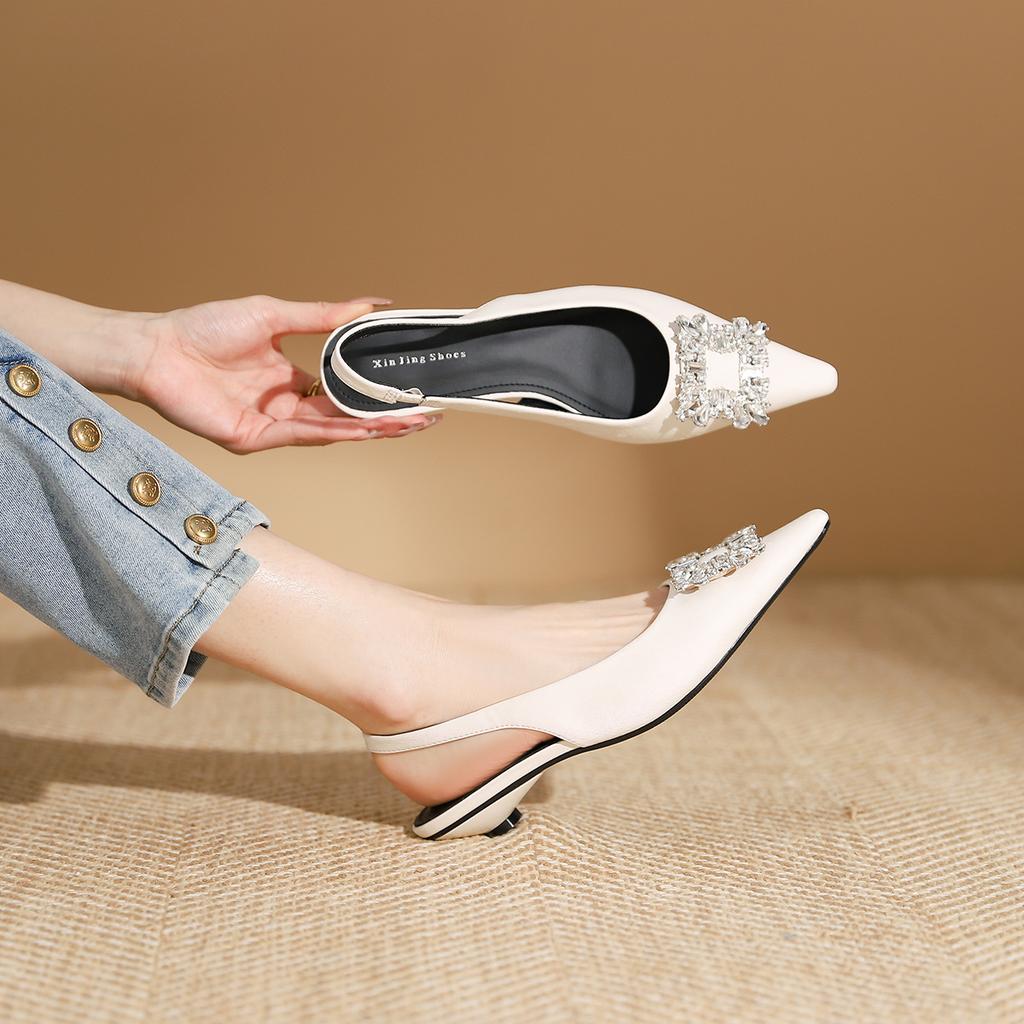 139-6 туфли-лодочки с острым носком и низким каблуком с блестящими стразами, новые весенне-летние, французские, с мелким вырезом, квадратной пряжкой, открытой пяткой, плоской подошвой, женские — купить товар онлайн с бесплатной доставкой по всему миру!