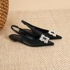 139-6 туфли-лодочки с острым носком и низким каблуком с блестящими стразами, новые весенне-летние, французские, с мелким вырезом, квадратной пряжкой, открытой пяткой, плоской подошвой, женские