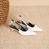 198-5 Элегантные туфли-лодочки на среднем каблуке с ремешком-цепочкой с острым носком, женственные, с открытой пяткой и неглубоким вырезом, на тонком каблуке, женская обувь
