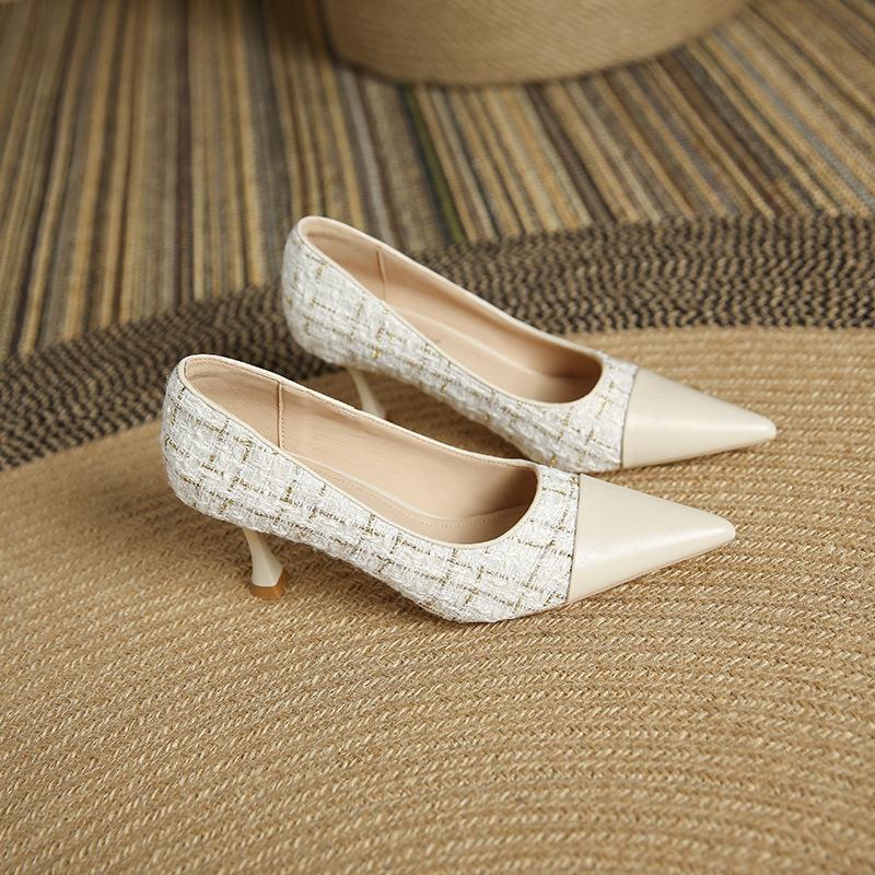 3351-16 Французские туфли-лодочки на высоком каблуке с острым носком, в цветовой гамме, женские, 2025 новая коллекция, с острым носком, с принтом «тысяча птиц», с мелким вырезом, темпераментные туфли-лодочки женские
