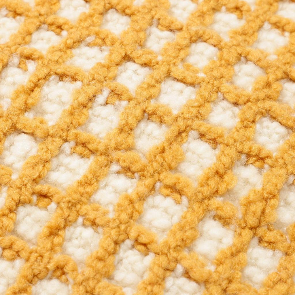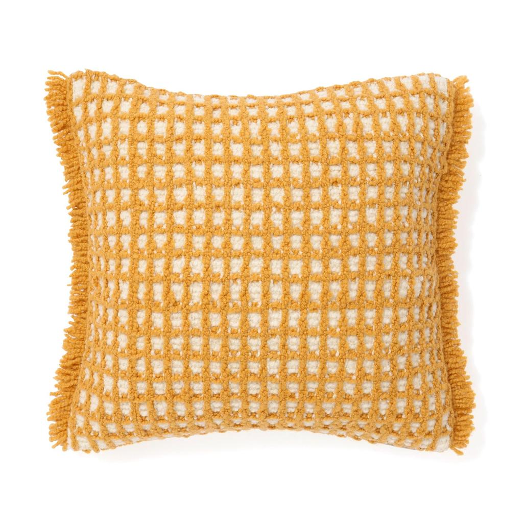 Francfranc Waffle Fringe Cushion Cover, 45cm x 45cm, Yellow (084), Check Pattern, Fringe, Interior Decor