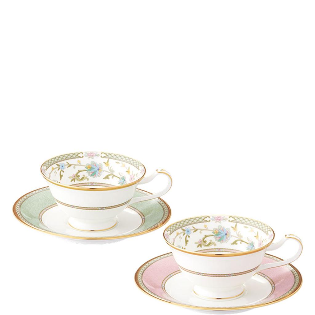 Noritake Чашка и блюдце Ёсино (Набор из двух меняющих цвет пар) (Для кофе и чая) 220 мл, Зеленый и Розовый, Костяной фарфор, Y6988/998307