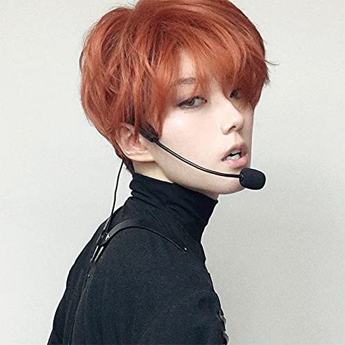 Мужской парик в стиле Харадзюку, оранжевый, короткий, популярный, модный, с сеткой, выглядит естественно, унисекс.