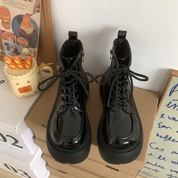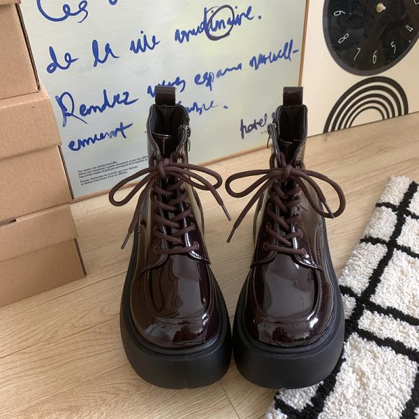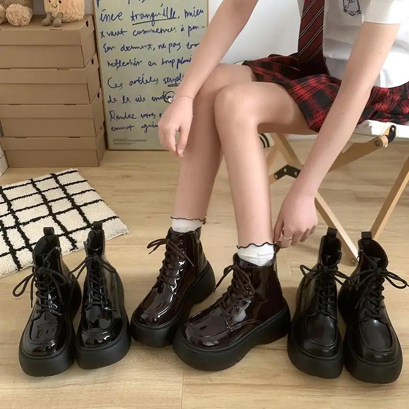Туфли Лолиты Женские Низкие Туфли Ботинки-Женские Ботильоны Женские Рок Осень Верховая езда Кожа Ретро Мотоциклетные ботинки Лакированные Ботинки для верховой езды