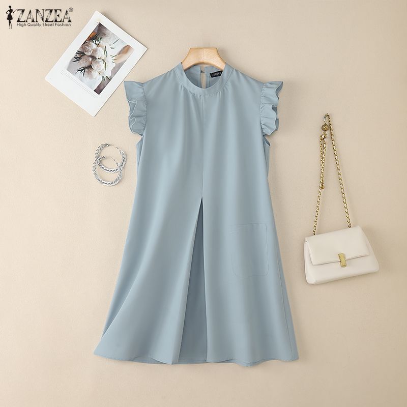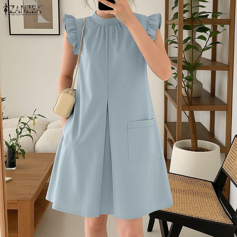 ZANZEA Женское повседневное летнее платье без рукавов со стойкой
