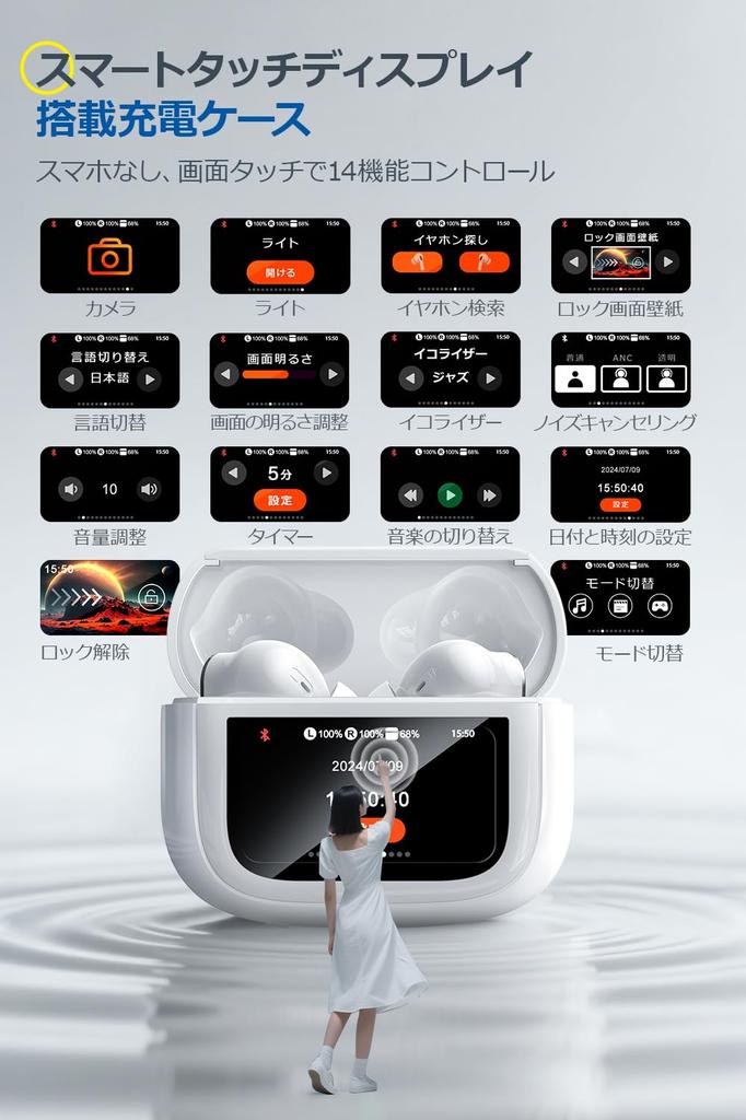 [Чехол с сенсорным управлением, 14 простых в использовании функций, Облегчает поиск ваших наушников] В отличие от традиционных кейсов для беспроводных наушников, этот зарядный кейс оснащен сенсорным дисплеем. Легко управлять 14 функциями (выбор музыки, шумоподавление, захват окружающего звука, регулировка громкости, поиск наушников, настройки эквалайзера, обои для экрана блокировки, подсветка, таймер, регулировка яркости экрана, выбор языка, настройка даты и времени, разблокировка и оставшееся время работы аккумулятора) без смартфона. Функция поиска наушников обеспечивает спокойствие, даже если вы потеряете свои наушники.. Интуитивное управление возможно только с помощью кейса, даже в пригородном поезде или во время занятий спортом, а компактный и легкий дизайн делает его чрезвычайно портативным. Повседневное использование значительно улучшено.