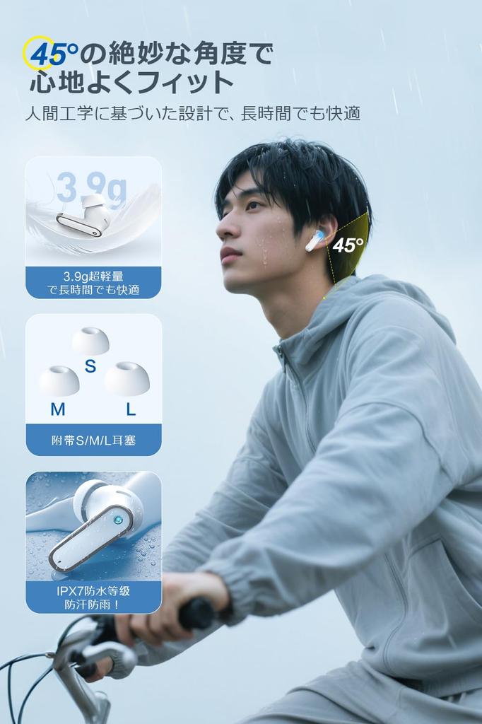 [До 50 часов воспроизведения, Водонепроницаемость IPX7 и Сверхлегкий дизайн, Идеально для спорта, поездок на работу и веб-конференций] Эти Bluetooth-наушники обеспечивают примерно 6-8 часов воспроизведения и до 50 часов с зарядным кейсом. Светодиодный дисплей позволяет с первого взгляда проверить оставшееся время работы аккумулятора наушников и зарядного кейса.. Сверхлегкий дизайн, весом всего 3,9 г, и эргономичная посадка под углом 45° обеспечивают удобную посадку, не вызывающую усталость даже при длительном использовании.. Кроме того, водонепроницаемость класса IPX7 означает, что вы можете быть уверены даже во время потных тренировок в спортзале, пробежек или внезапного дождя.. Эти беспроводные наушники — надежный выбор для различных повседневных ситуаций, включая занятия спортом, поездки на работу и веб-конференции.