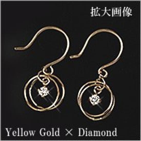 Diamond 10k Yellow Gold Hook April Sa408 [Four-Leaf Clover] Earrings, Birthstone, Women's