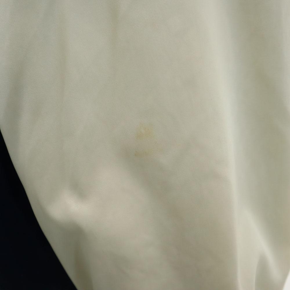 Повсюду коричневые пятна, пятна на манжетах и шее, пятна, красные пятна спереди и следы износа. Пожалуйста, поймите это перед покупкой.