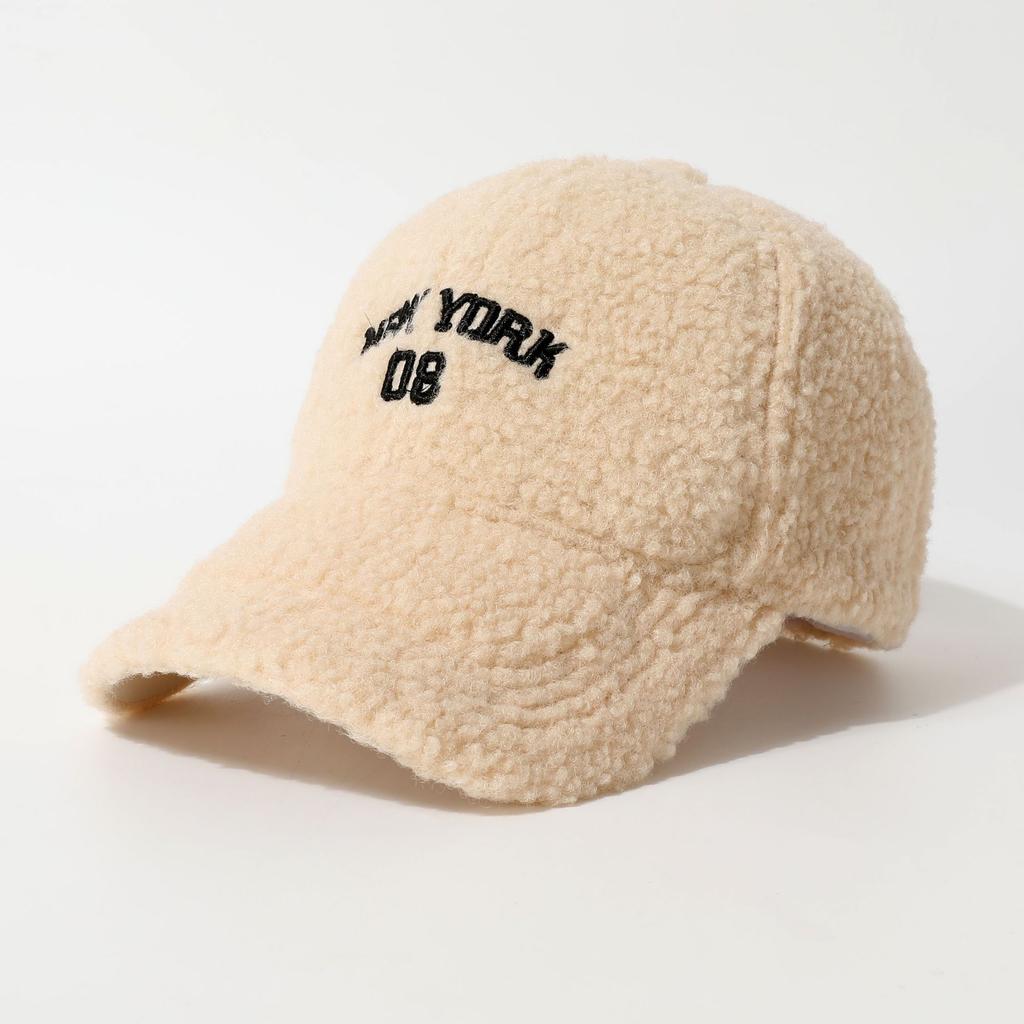 Бейсболка из овечьей шерсти Осень и Зима Теплая и Защищающая от холода и Ветрозащитная Вышивка букв Однотонная Модная Универсальная Плюшевая Кепка с козырьком