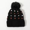 Новая зимняя шапка с меховым помпоном для женщин, универсальная вязаная шапка-пуловер в горошек из шерсти с бархатной защитой ушей, ветрозащитная и теплая шапка, трендовая