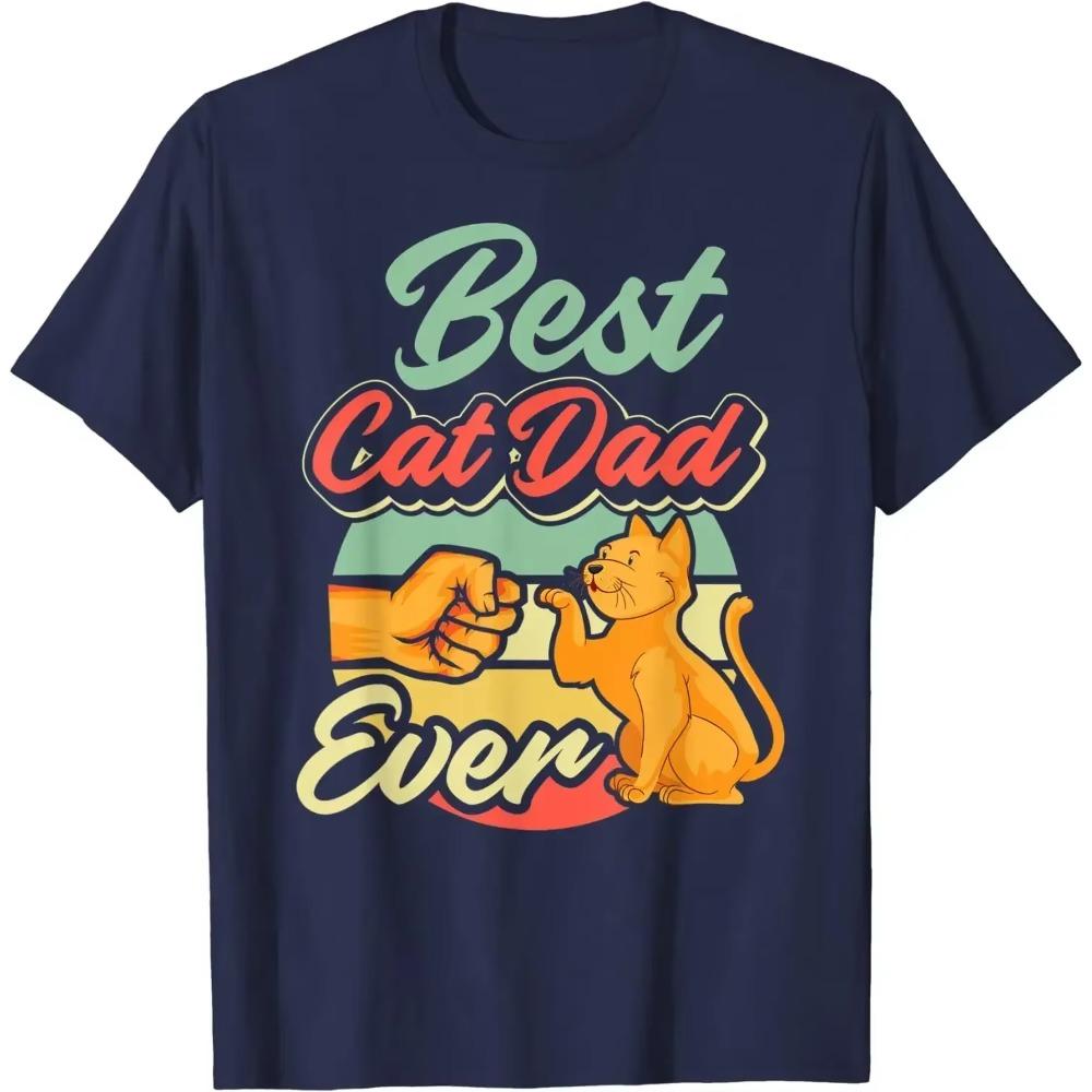 Лучший папа-кот на свете Ретро Винтаж Лучший подарок отцу-коту Футболка Повседневная Хлопковая На каждый день Четыре сезона Футболки с графикой