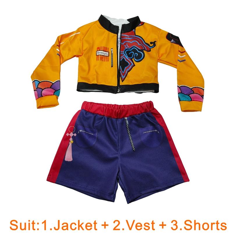 Размер: 130, Длина куртки: 35 см, бюст: 72 см, плечо: 39 см, длина рукава: 44см, Длина жилета: 34см, Бюст жилета: 68см, Длина шорт: 34см, Талия: 54см