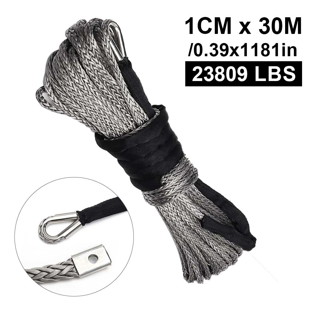 23000 фунтов Автомобильный синтетический трос для лебедки Серый трос для эвакуации 4WD ATV Сверхпрочный трос, свернутый в петлю 10 мм x 30 м