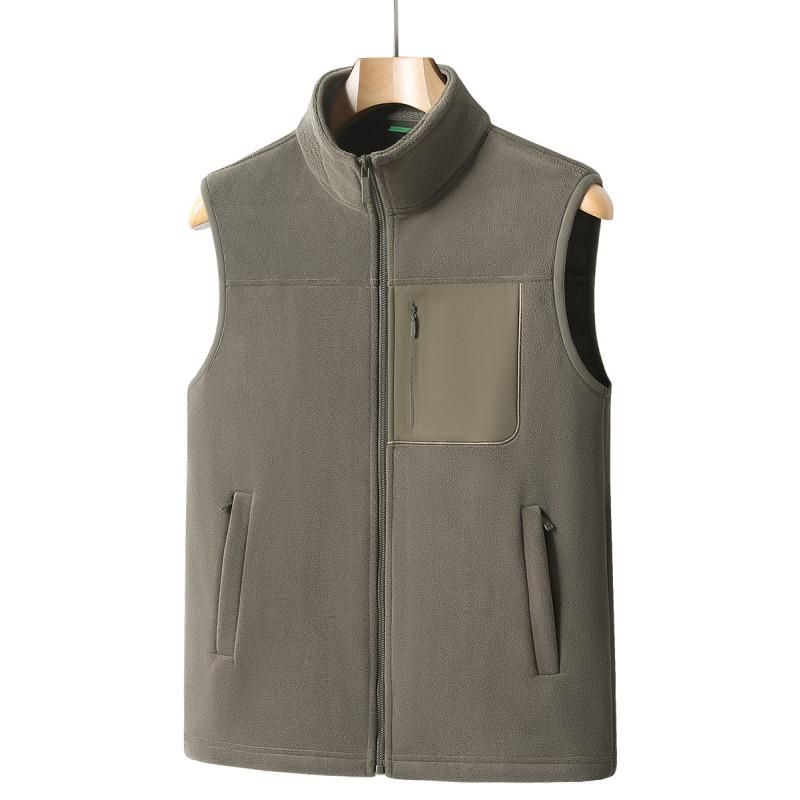 Новый Мужской Модный Флис Мужской Осенне-Зимний Плюс Бархатный Утепленный Жилет с Застежкой-Клипсой Теплая Безрукавная Куртка Большого Размера