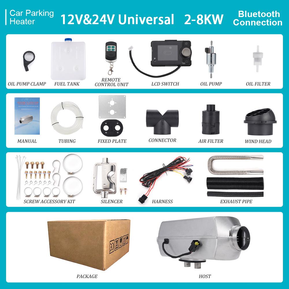 2-8 кВт 12 В и 24 В Раздельная машина Bluetooth Парковочный отопитель Пульт дистанционного управления Регулировка высоты Воздушный отопитель для автодома, прицепа, кемпера