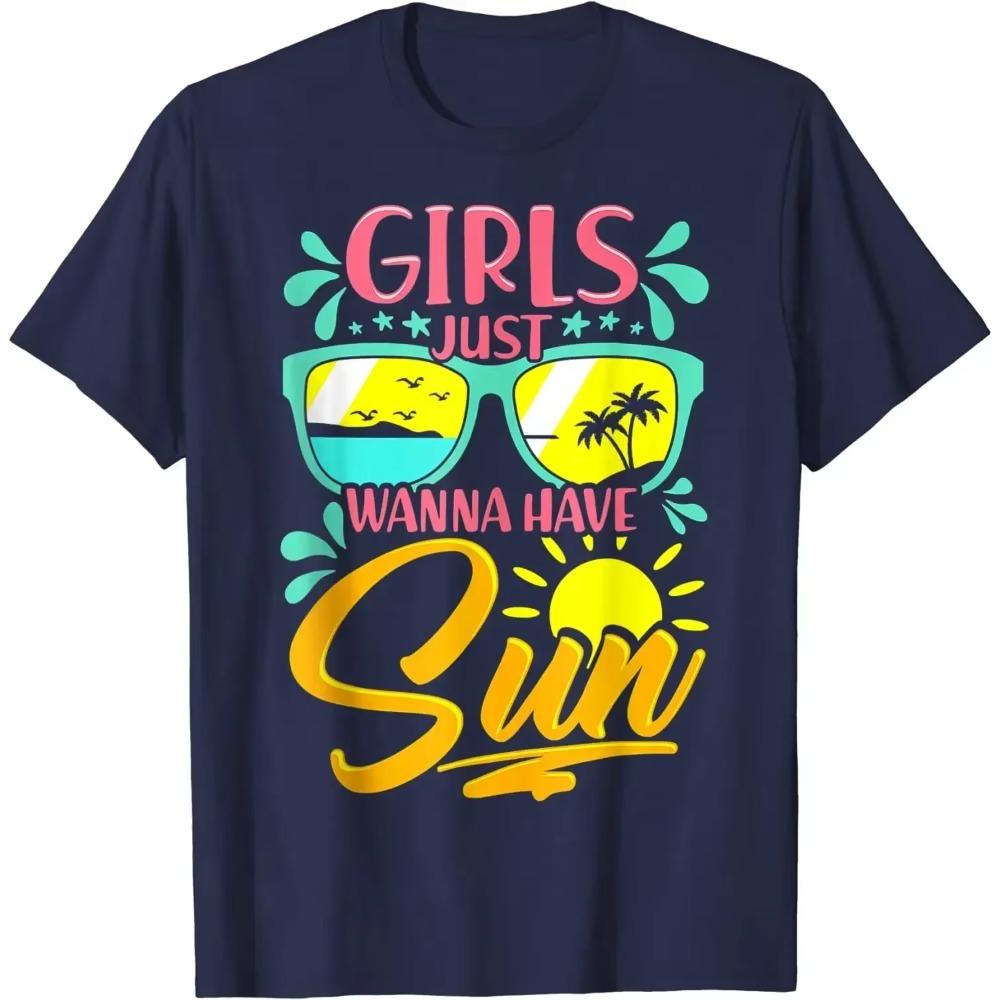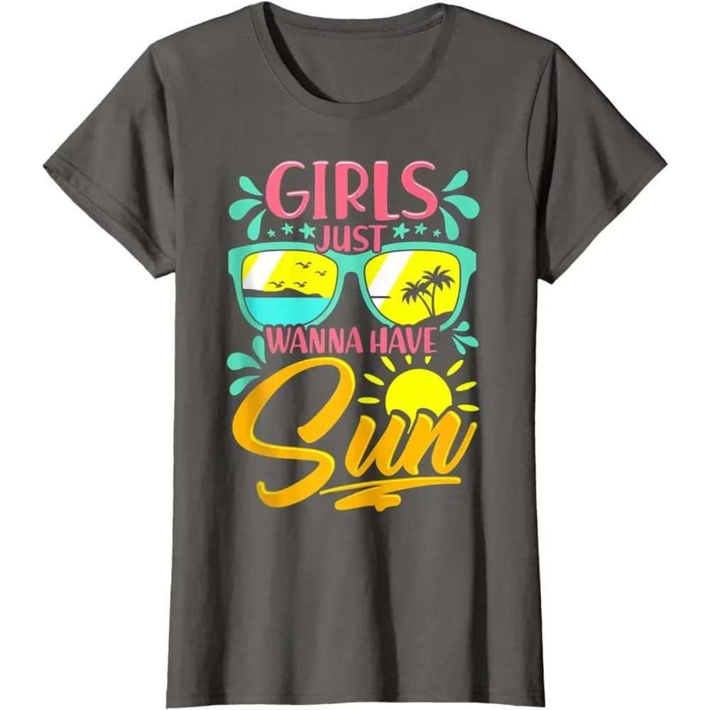 Забавная футболка с надписью «Летний пляжный отдых, девушки просто хотят солнца». Футболки с графическим принтом. Хлопковые повседневные футболки на все времена года.