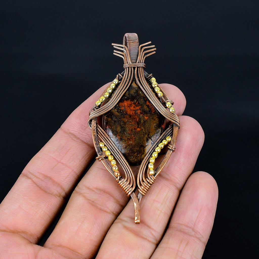 Seam Agate Pendant Gemstone Handmade Jewelry, 999 Copper Wire Wrapped Pendant, Gift For Wife Jewelry
