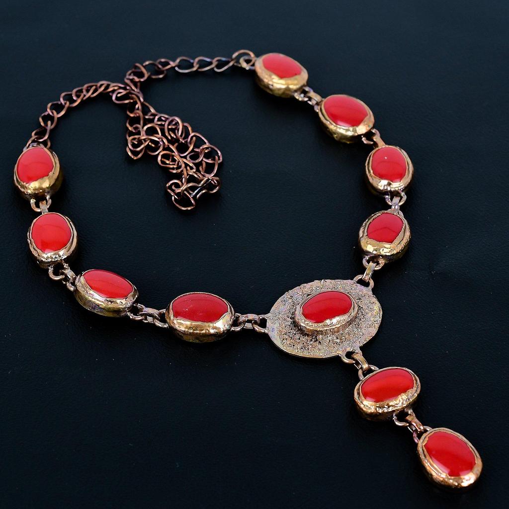 Колье из красного коралла ручной работы, ожерелье с гальванопокрытием медью, антикварные украшения, ожерелье с регулируемой цепочкой, подарок на помолвку — купить товар онлайн с бесплатной доставкой по всему миру!