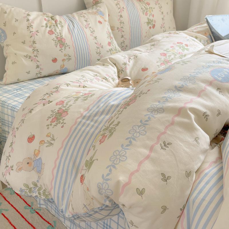 Новые милые комплекты постельного белья из чистого хлопка с принтом, мультяшный комплект одеяла, приятный к коже для сна в обнаженном виде, взрослый комплект простыней для всех сезонов