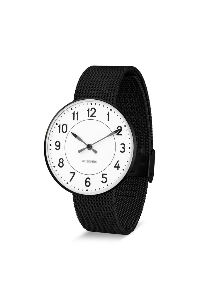ARNE JACOBSEN STATION 53412-2010, 40мм, Скандинавский дизайн, Водостойкие (Тихий дизайн без секундной стрелки), БелыйЧерный, Сетчатый ремешок