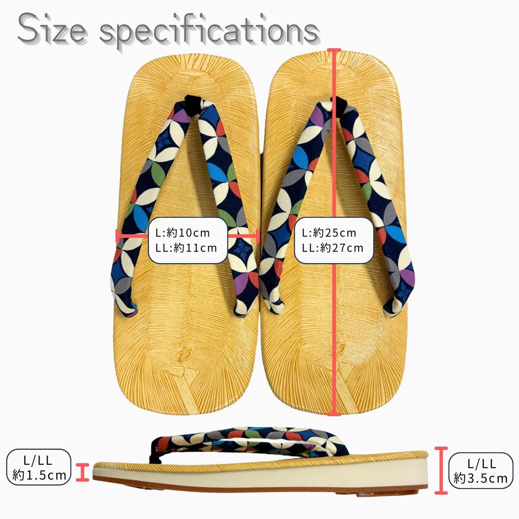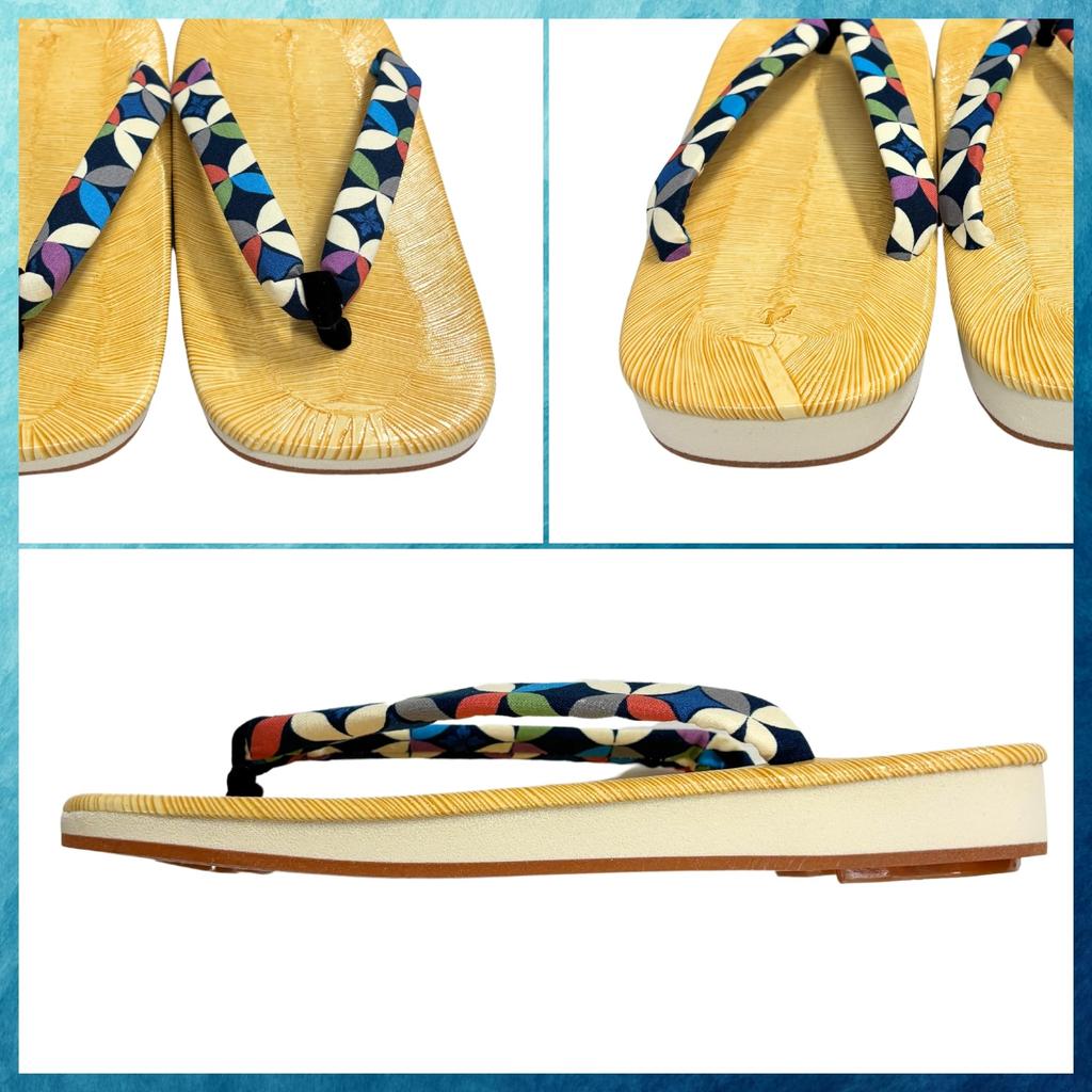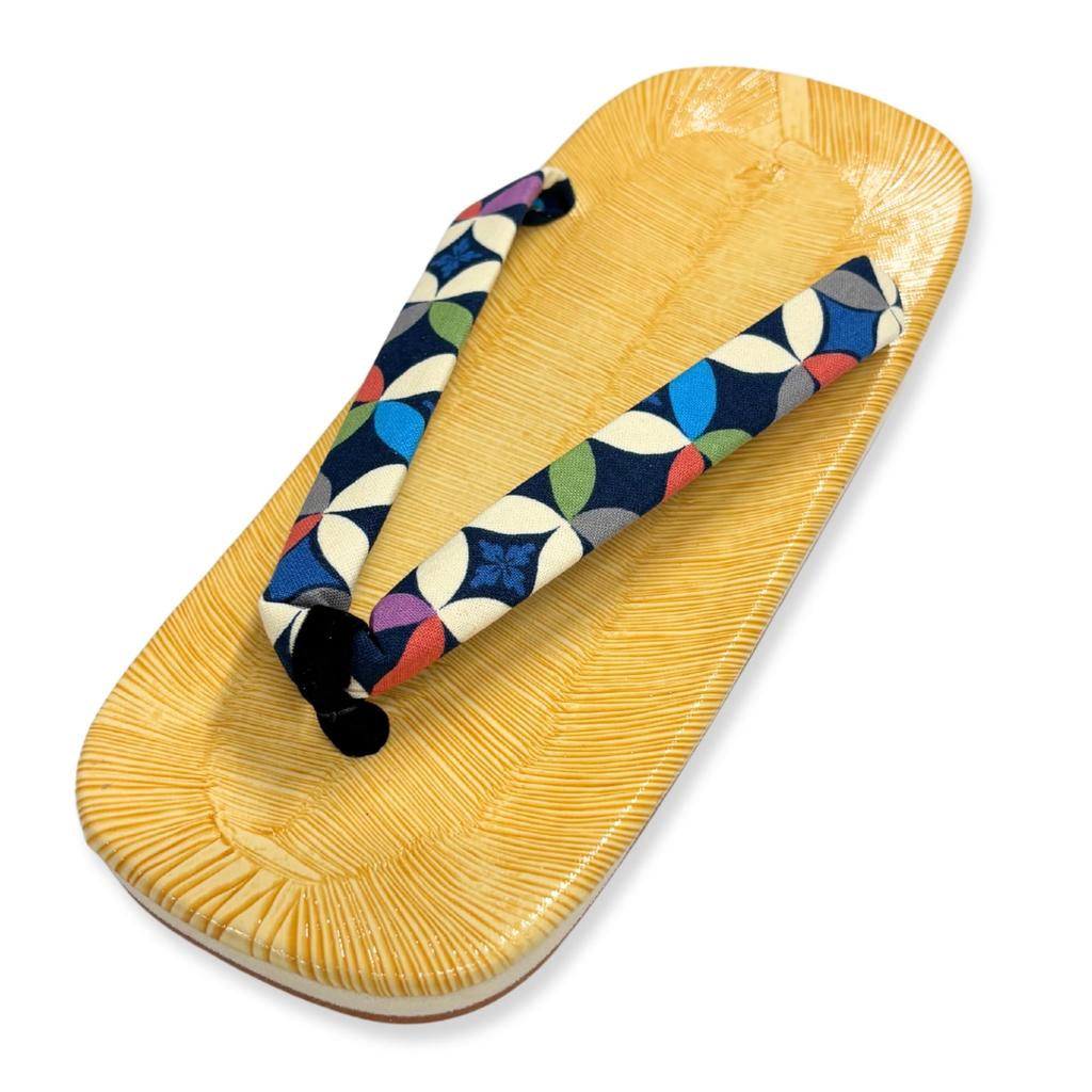 Edoten Geta Made in Yellow Tatami Patterned Navy Shippo Size L Sandals, Japan, Sole, Strap, Blue, Pattern,