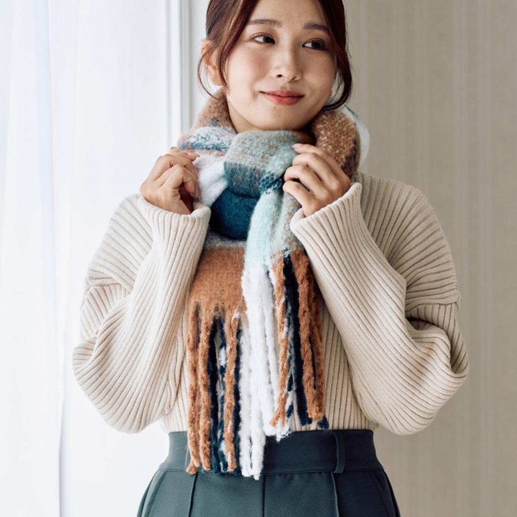 Moonbat estaa Volume Check Deep Blue x Brown (Esta) Web-Exclusive Scarf, Pattern, 60283,