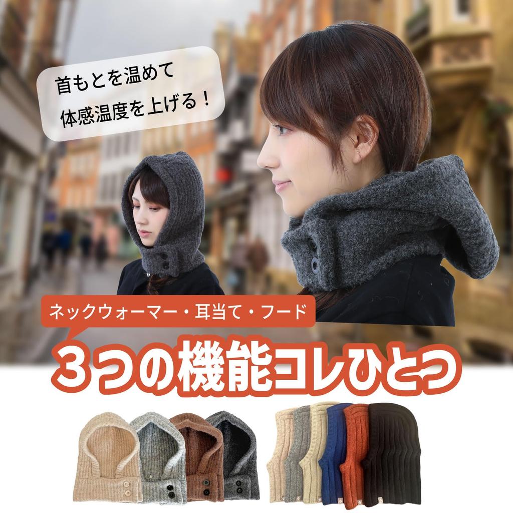 Вязаная балаклава-манишка с теплым капюшоном, стильная манишка с капюшоном, серая [TRAX SHOP] Женская, на пуговицах, шарф, (Темный Микс)