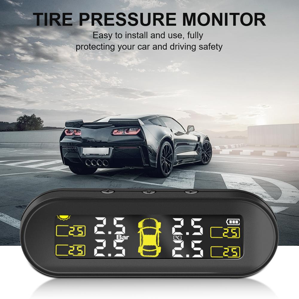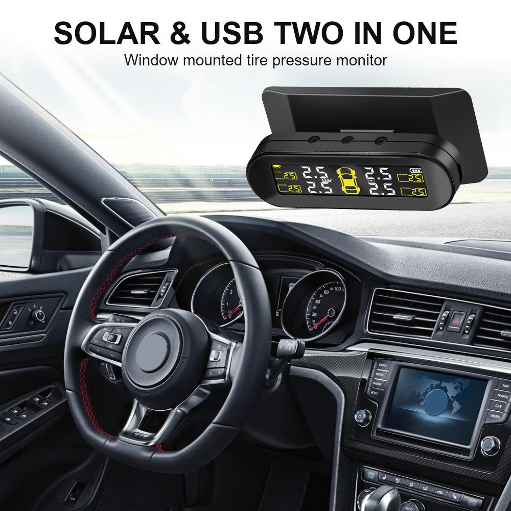USB Solar TPMS 4 External Sensors Tire Pressure Monitoring System Rotating Holder Tyre Pressure Alarm Car Tyre Pressure Monitor
