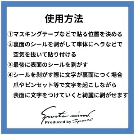 Эта наклейка [спортивный ум] идеально подходит для украшения вашего автомобиля. Его можно наносить на любую часть автомобиля, включая капот, бока и заднюю часть.. Это вырезающая наклейка. После отклеивания остается только текст. Используйте малярный скотч, чтобы определить местоположение, затем снимите подложку и нанесите на транспортное средство, используя шпатель или подобный инструмент, чтобы удалить пузырьки воздуха.. Наконец, снимите переднюю наклейку, оставив только текст. Если текст переносится на обратную сторону наклейки при ее отклеивании, его можно чисто удалить, поддев буквы ногтями или пинцетом и затем перенеся их на лицевую сторону.. Остерегайтесь подделок. Этот продукт продается компанией Crave Co., Ltd.. В комплекте идет простая инструкция по установке (на японском). «Спортивный ум» является зарегистрированным товарным знаком Crave Co., Ltd.