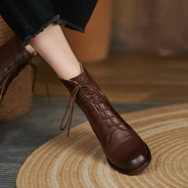 Модные женские ботинки из натуральной кожи ГОРЯЧИЕ ПРОДАЖИ Осенняя обувь для женщин Зимние ботинки ручной работы Квадратный носок Массивный каблук Обувь zapatos mujer