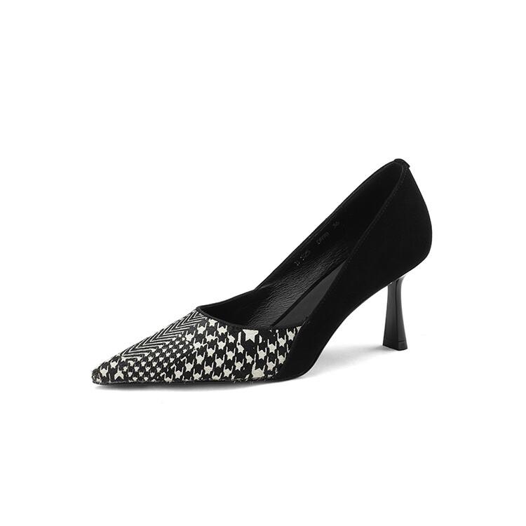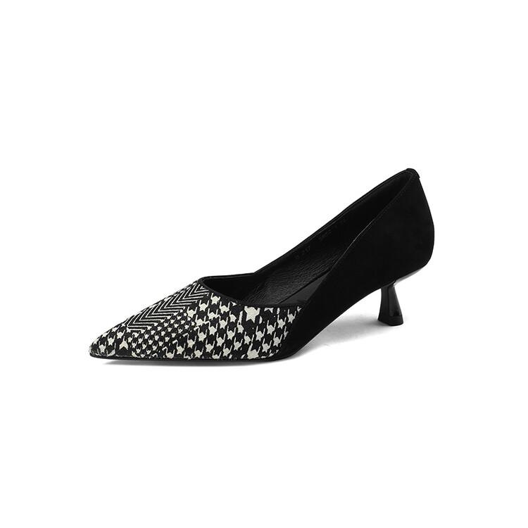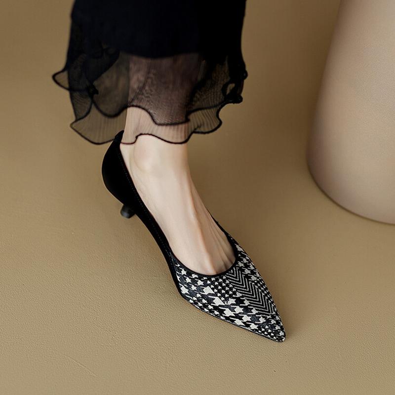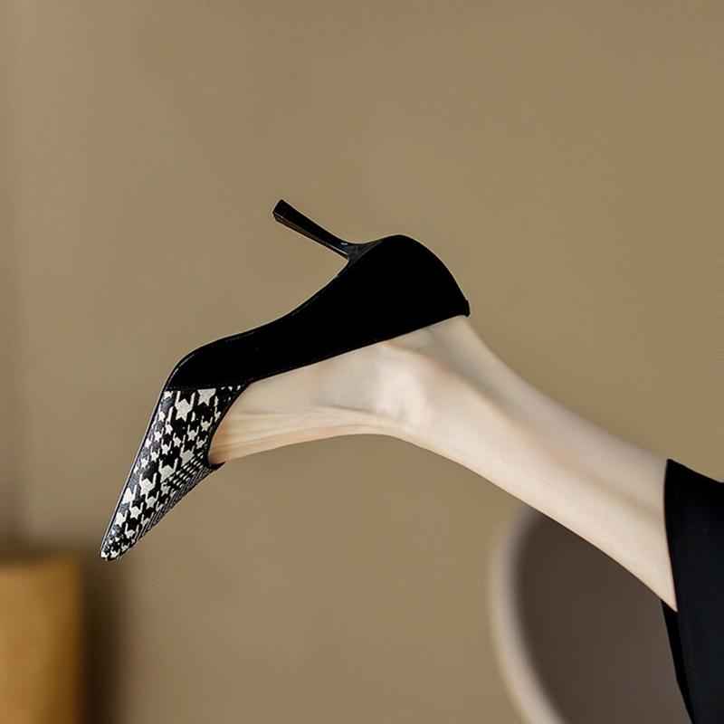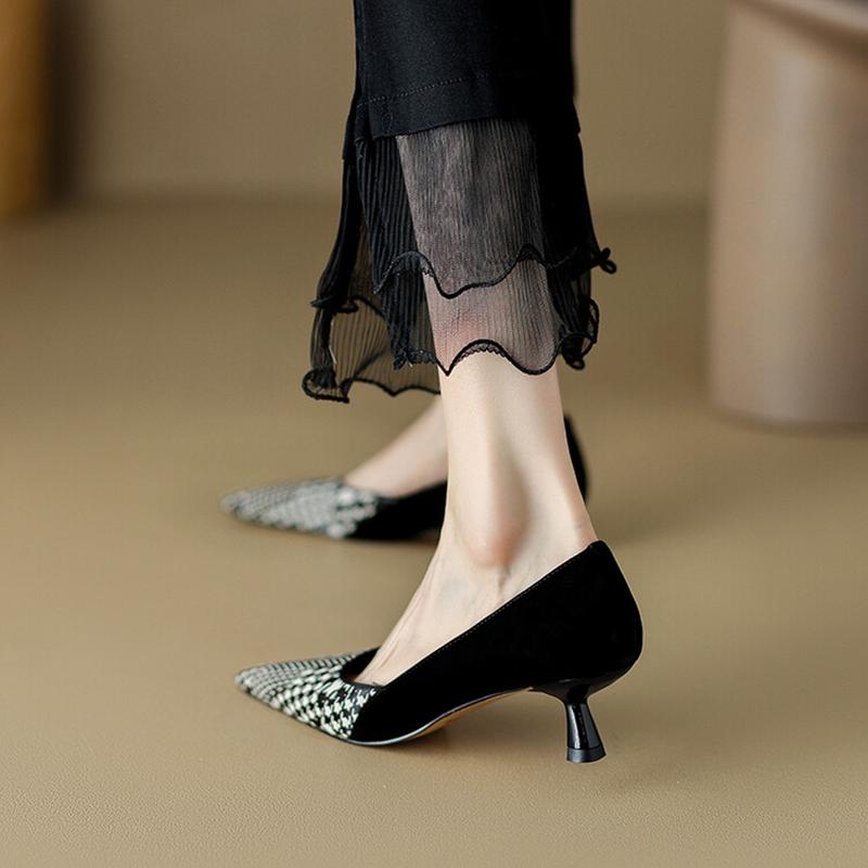 Мода НОВЫЕ Весенне-Осенние Женские Туфли Насосы Обувь из Овчины Замши для Женщин Острый Носок Тонкий Каблук Обувь Слипоны Решетка Черные Вечерние Туфли
