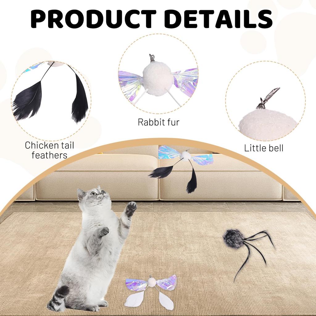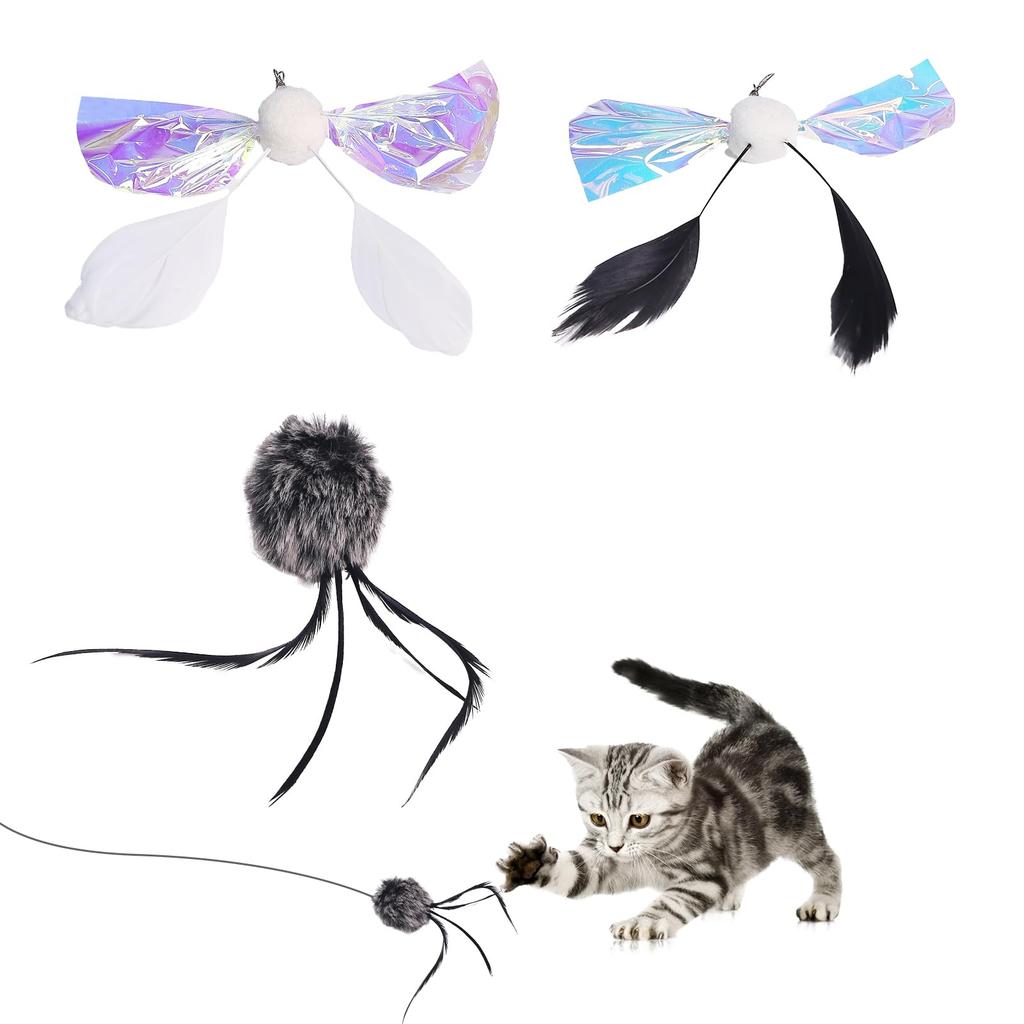 3 шт. Игрушка для кошки, Дразнилка для кошки, Игрушка для кошки, Натуральный кроличий мех, Замена перьев, Пушистый меховой мячик, Натуральный и безопасный, Помогает возбужденным кошкам снять напряжение