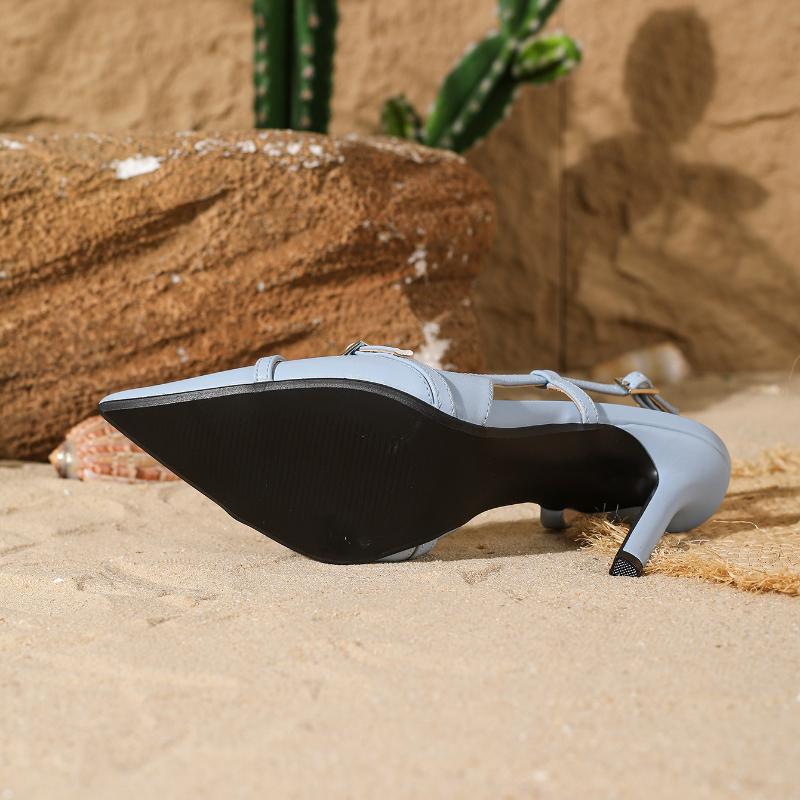 Fashion Fashion Blue Pointed Toe Thin Heel Sandals Women Elegant Cross Tied Buckle Slide Sandals Summer Comfortable Banquet Dress Pumps