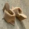 Модные Элегантные Пушистые Туфли-шлепанцы на Высоком Каблуке Дизайнерские Женские Сексуальные с Открытым Носком на Танкетке Сандалии-слайды Модная Вечерняя Обувь для Платья