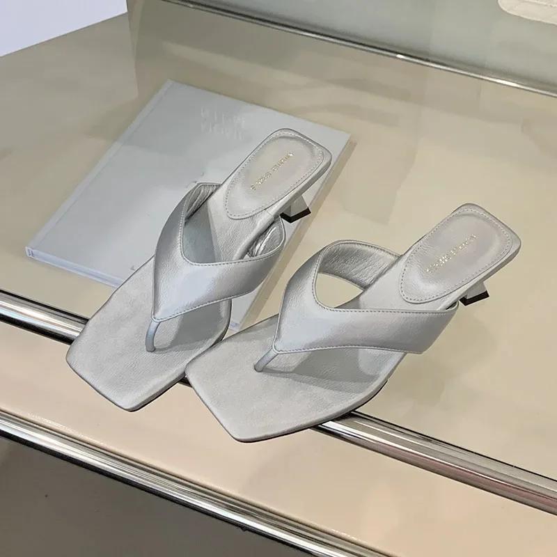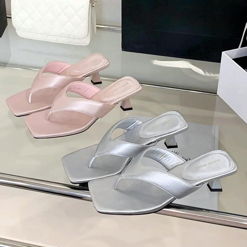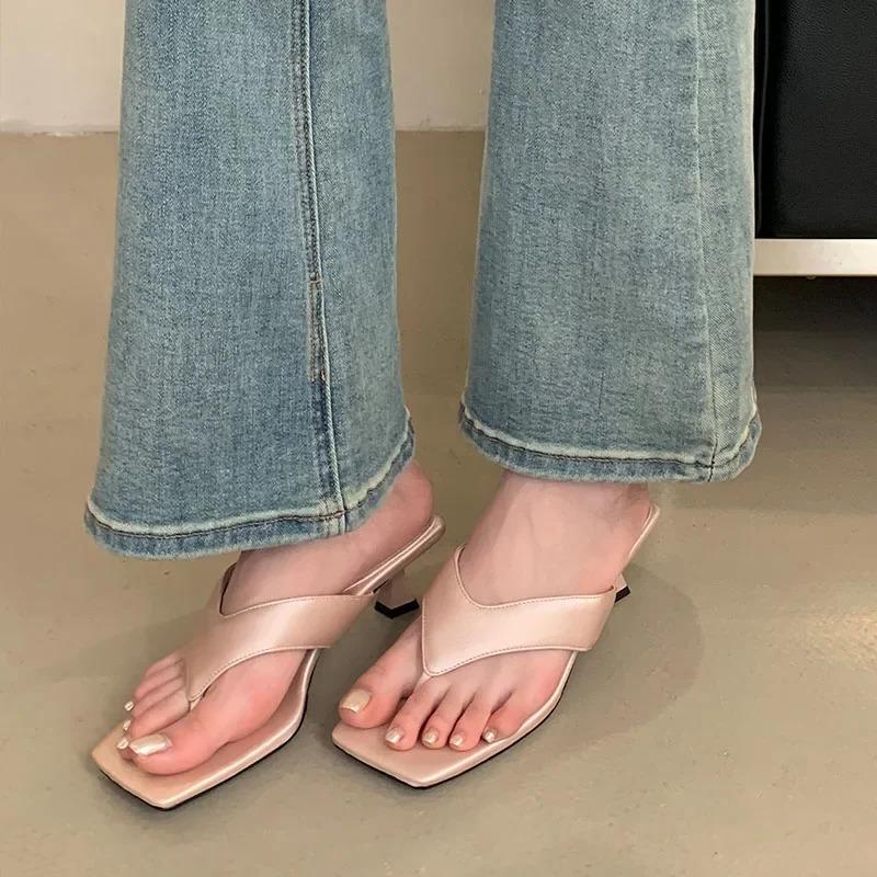 Fashion Comfort Clip Toe Heeled Slippers Women Summer Sexy Square Toe Design Brand Flip Flops Elegant Low Heel Women Shoes Beach Sandals