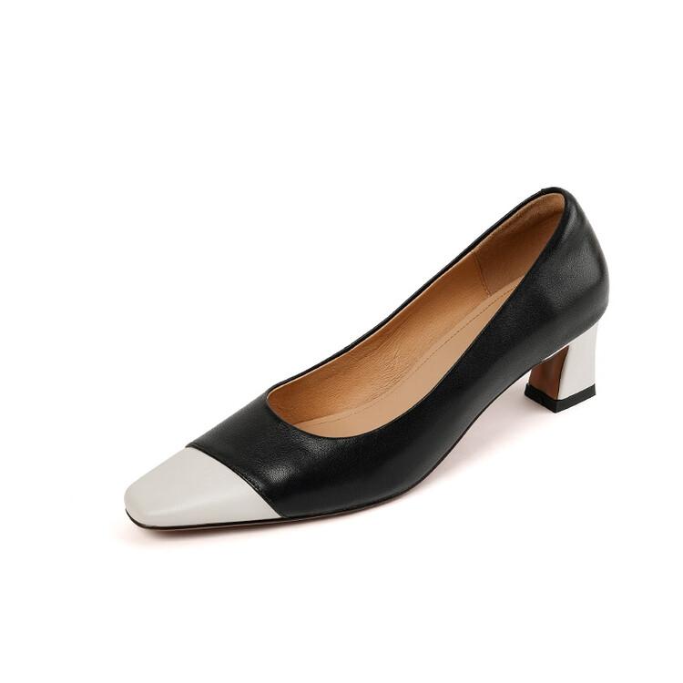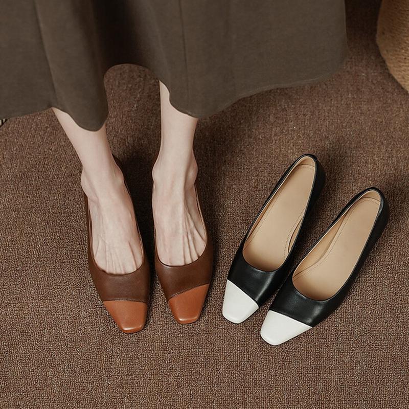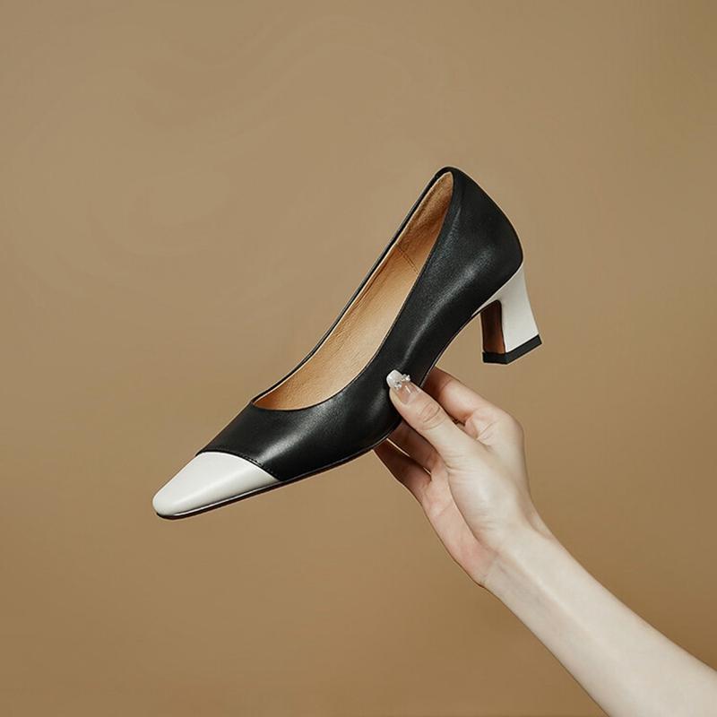 Fashion NEW Spring/Autumn Women Shoes Square Toe Chunky Heel Women Pumps Genuine Leather Shoes for Women Elegent Mixed Colors Cute Shoes