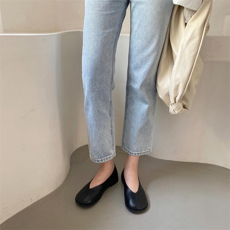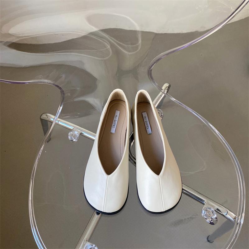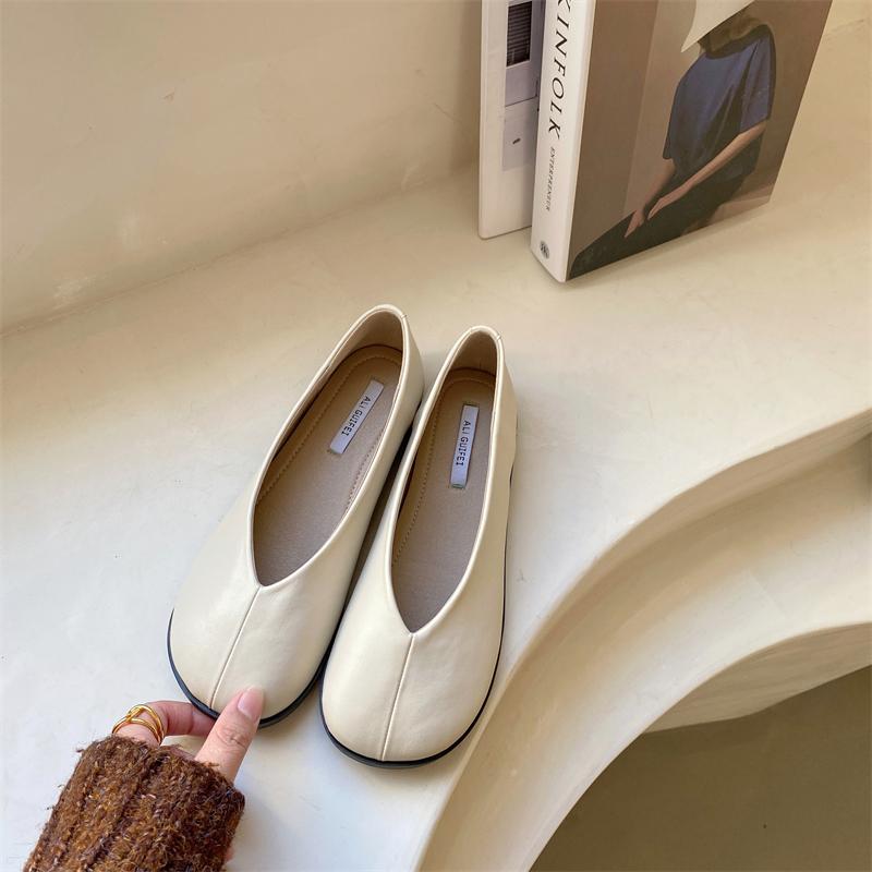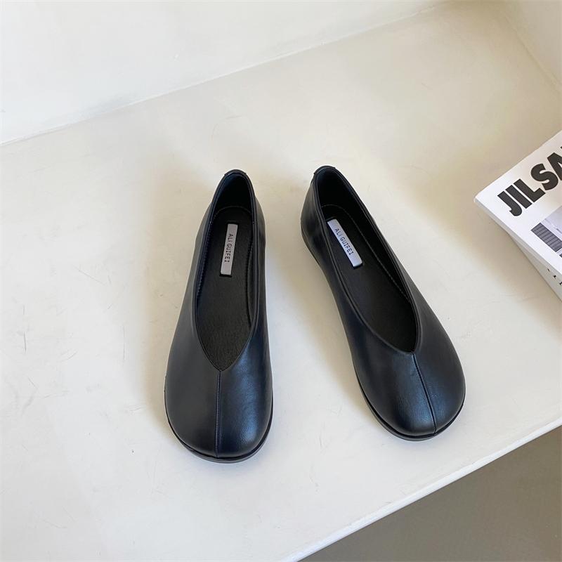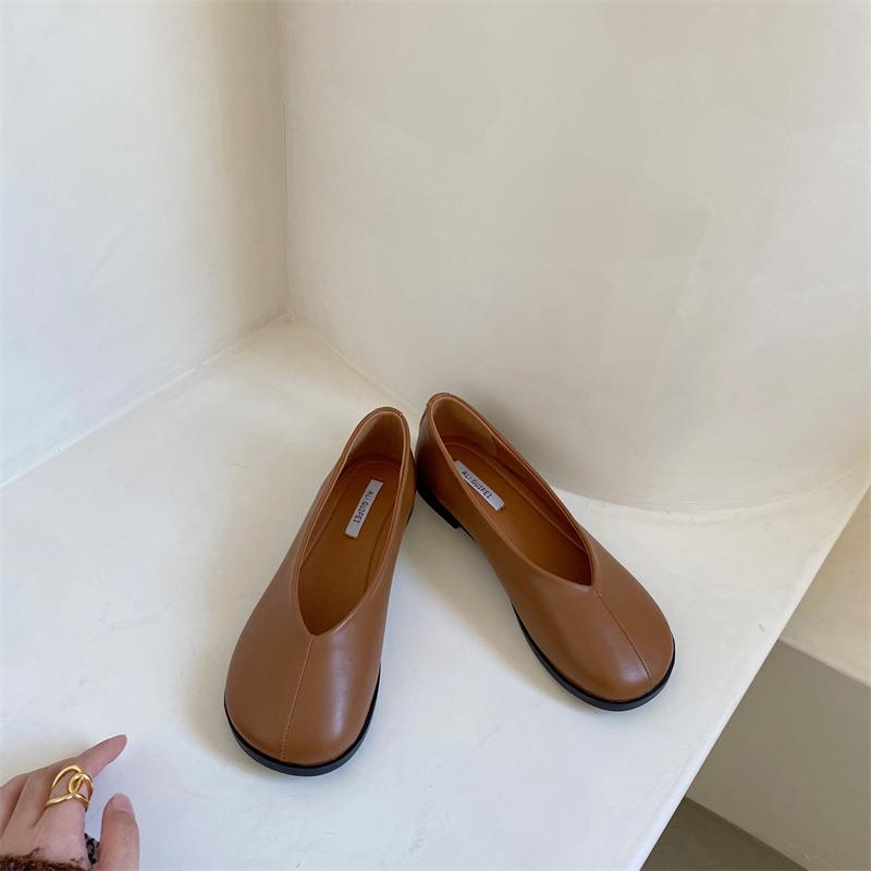 Модные ретро лоферы с круглым носком женские однотонные кожаные балетки с мелким V-образным вырезом лодочки мокасины женские удобные слипоны повседневная обувь для ходьбы для дам